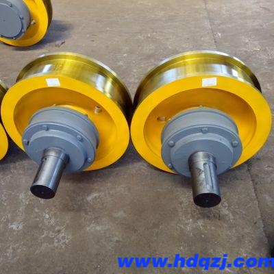 雙緣車輪組主要用于50T以下的起重機大車運行機構。經表面淬火后的車輪踏面硬度可以達到HB330-380,經整體調質熱處理后,性能會更優。另選擇ZG50SiMn材質的車輪可以提高輪壓20%。 雙緣車輪組 選用軸承全部為圓錐滾子軸承。