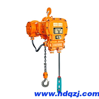 要想推動小車時,可推動荷重低吊物,但必須做好防范措施。也可拉動不運轉的空鉤子。決不能把手放在吊鉤部件的頂部或觸及正在慢速運行中的鏈條。