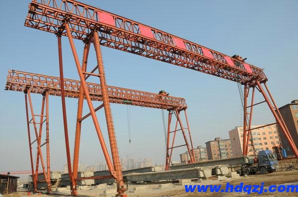 雙梁門式起重機(jī)承載能力強(qiáng),跨度大,整體穩(wěn)定性好,品種多,但其自身質(zhì)量比同等起吊能力的單梁門式起重機(jī)要大,其成本也較高。根據(jù)鋼梁結(jié)構(gòu)的不同,可分為箱梁和桁架兩種。一般采用箱形結(jié)構(gòu)和主梁結(jié)構(gòu)。