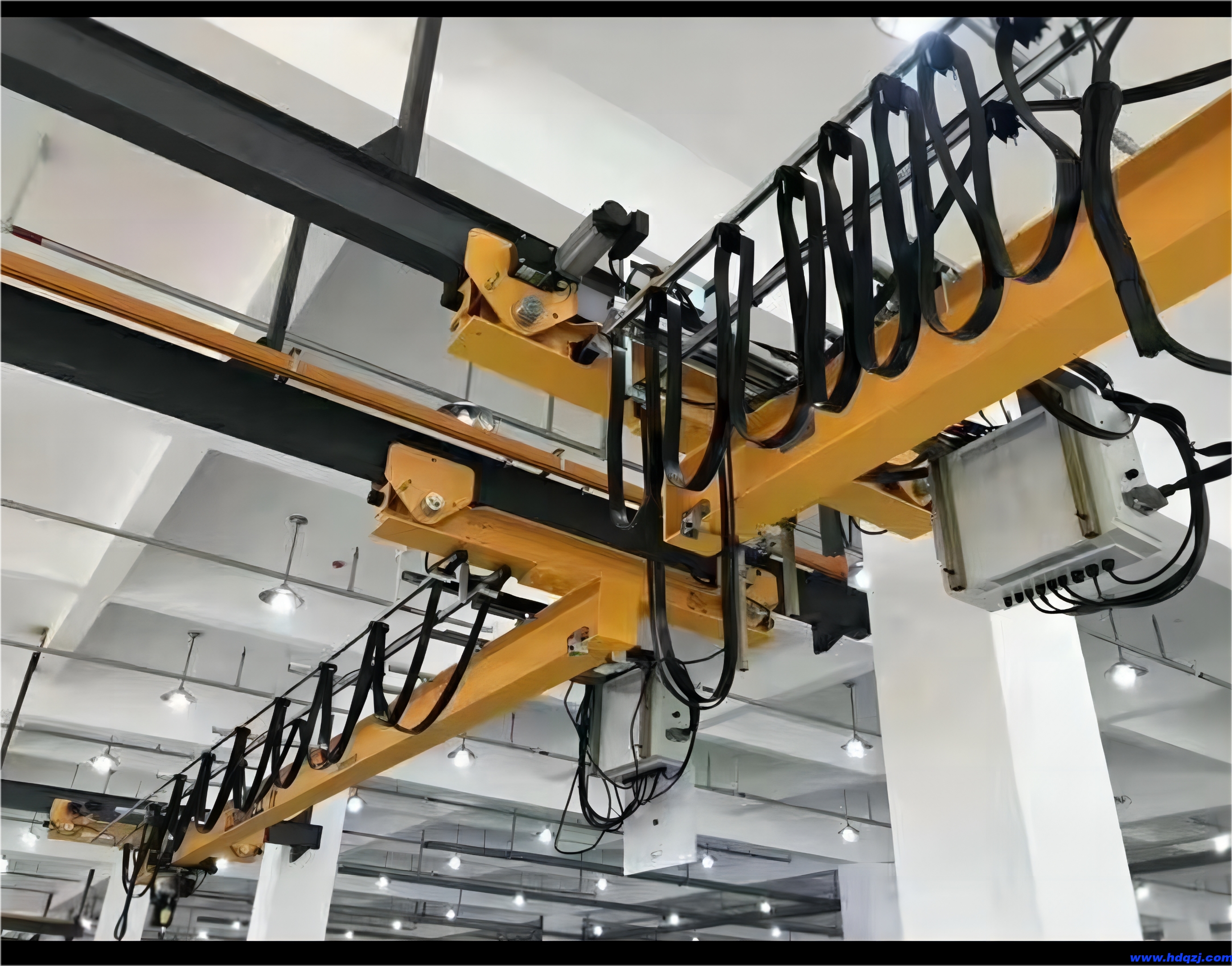 柔性雙梁懸掛起重機:由標準直線段軌道等輔助標準件組成。主梁兩端的汽車行走部分可在垂直于主梁方向的兩條平行懸掛軌道上運行。與環鏈電動葫蘆配套使用,電動葫蘆運行車可沿主梁方向運行。本產品用于平面物料運輸,適用于車間、倉庫等場所。柔性雙梁懸架起重機采用雙軌平行組合梁,增加了主梁的承載力。因此,它可以用來提高大跨度和重物料。